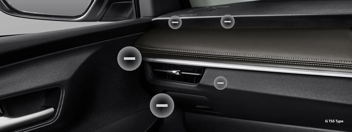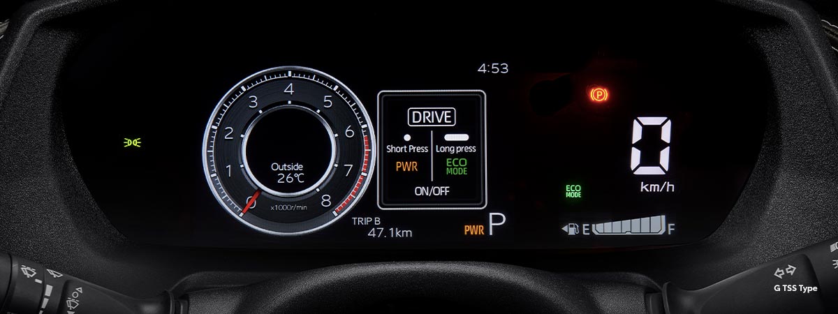 - Variuan G dan G TSS mendapat mod pandu (Eo dan Sport), brek cakera depan dan belakang (brek dram belakang untuk E MT), paparan multi-info (MID) digital TFT 7 inci dengan antaramuka boleh kustom, Brek Parkir Elektrik (EPB), kemasan pad lembut pada bahagian lutur, perehat lengan (armrest) di panel pintu dan konsol tengah, kamera parkir belakang, 6 beg udara (4 beg udara untuk E MT), Pemantau Titik Buta (BSM), Amaran Trafik Lintas Belakang (RCTA), stereng boleh laras atas-bawah (teleskopik) dan depan-belakang (tilt).