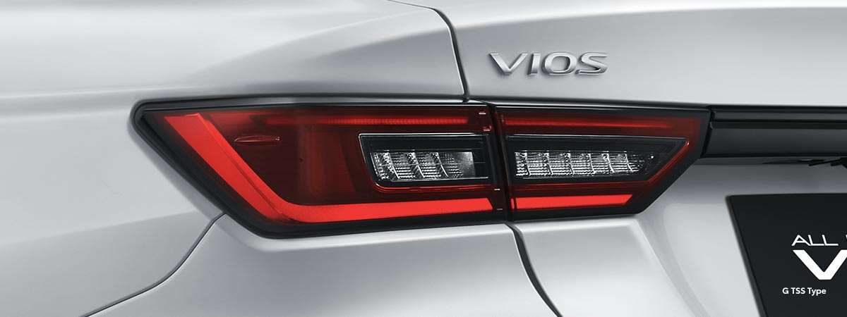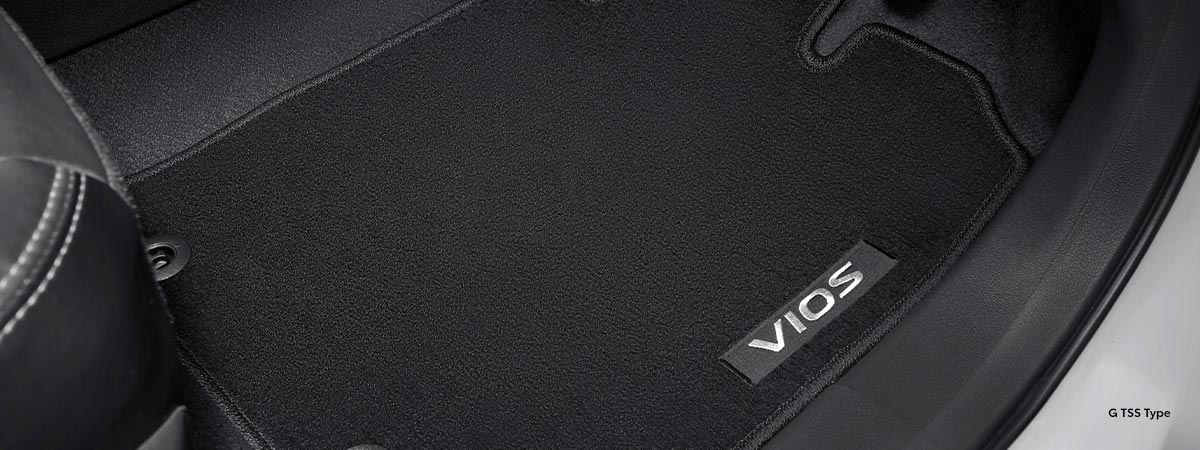 - Ciri asas diberikan terdiri daripada stereng kuasa elektrik (EPS), penulen udara, karpet lantai dengan sulaman logo Vios, unit infotainment 9 inci dengan konektiviti telefon pintar, Kawalan Traksi (TC), Kawalan Stabiliti Kenderaan (VSC) dan Bantuan Daki Bukit (HSA).