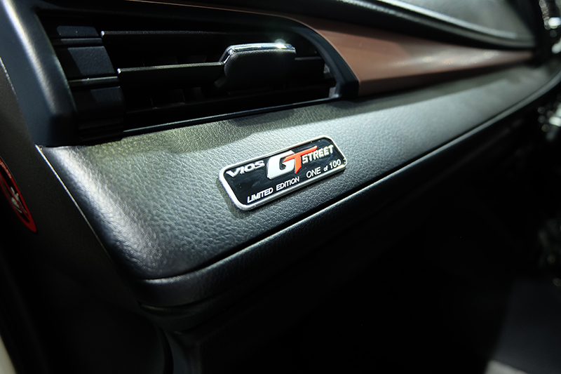 Vios GT Street turut dibezakan menerusi plat nombor pengeluaran ‘GT Street Limited Edition’ di papan pemuka dan juga dipasangkan bar strut pada ruang enjin, termasuk bar pendakap pusat rendah (lower center brace bar) dan bar pendakap belakang bawah (lower rear brace bar).