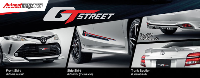 Bahagian sisi tertera pelekat GT Street, manakala rim direka baharu dengan hab TRD. Bampar belakang kini lebih sporty dengan lekuk dan kemasan ala difuser dan spoiler. Model khas ini cuma ada dalam warna Super White (putih). Rupa kabin kekal sama.