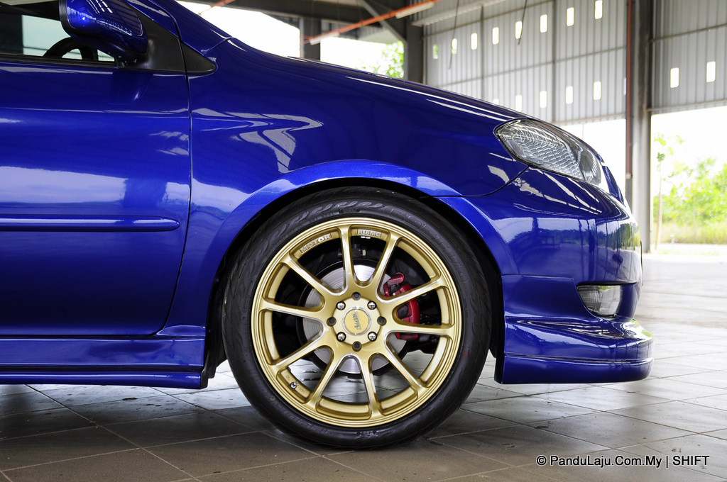 Lebih menarik, setiap penjuru jentera ini juga dipasangkan dengan sistem penyerap hentak boleh laras BC dan bar ‘stabilizer’ Ultra Racing bagi memastikan tahap rendaman dan kestabilan jentera. Apabila jentera dah laju, sistem pemberhentian juga dilakukan menerusi kehadiran brek daripada Toyota Yaris di hadapan manakala bahagian belakang masih lagi dikekalkan yang asal.