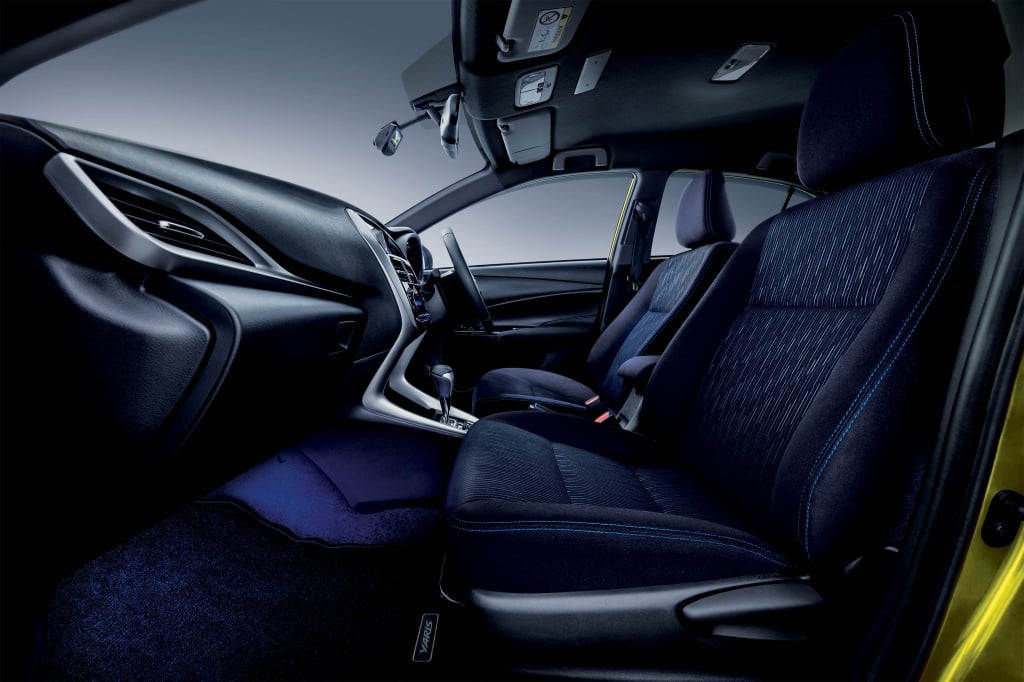 Ruang kabin menggunakan material berkualiti tinggi yang dapat dilihat pada seperti kerusi menerusi trim warna yang menonjolkan lagi sisi unik dan sporty Yaris (2019). Bagi mendapatkan ekstra ruang kargo, kerusi belakang boleh direbahkan rata bagi membolehkan pemilik memuatkan muatan panjang atau bersazi besar.
