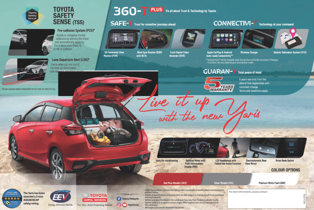 Jika berminat, Yaris (2020) facelift kini sudah boleh ditempah di semua bilik pameran sah Toyota seluruh negara, dengan waranti komprehensif 5 tahun tanpa had perbatuan.