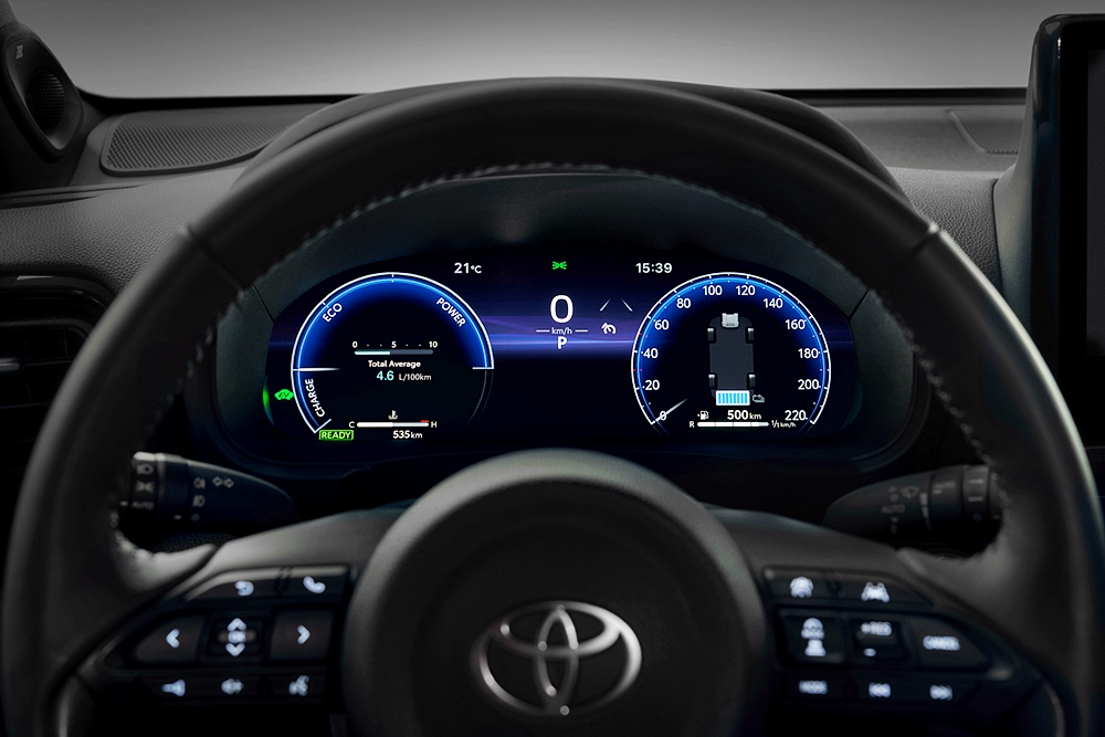 - Enjin 3-silinder 1.5L dengan Sistem Hibrid Toyota generasi kelima (THS 5).