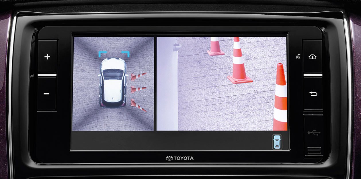 - Dilengkapi monitor pandang panoramik (PVM) dengan paparan keliling 360º menerusi empat kamera sekeliling kereta.