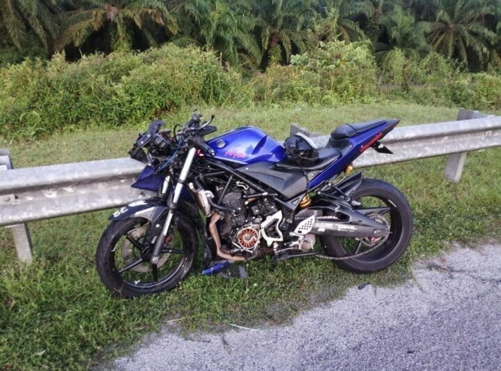 Insiden berlaku jam 5.50 pagi semalam apabila motosikal jenis Yamaha YZF-R25 ditunggang mangsa terbabas selepas bergesel dengan belakang sebuah lori hingga hilang kawalan sebelum terbabas.