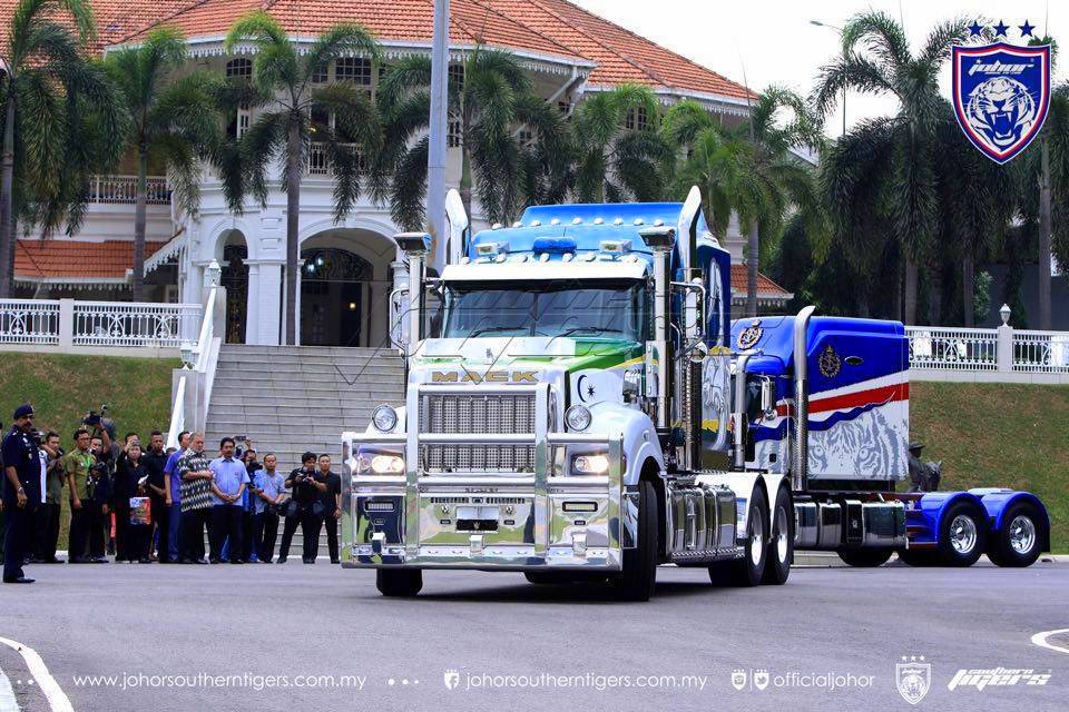 Untuk makluman semua, trak Mack yang dipandu Sultan Ibrahim sepanjang KMJ 2016 itu ditempah khas dan ia memiliki pelbagai keistimewaan tidak akan didapati dalam trak Mack yang lain.