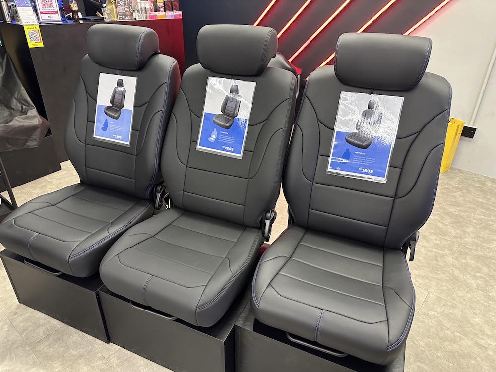 Ada tiga pilihan sarung kerusi ditawarkan eksklusif di TRAPO Hubs seluruh negara, iaitu: PVC (harga serendah RM1,299), kulit sintetik (harga mula RM1,699) dan semi-Nappa (harga mula RM2,099).