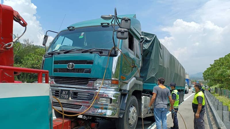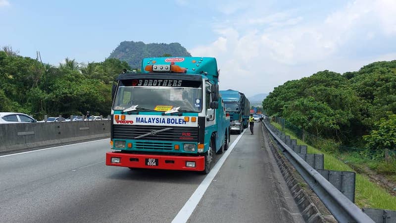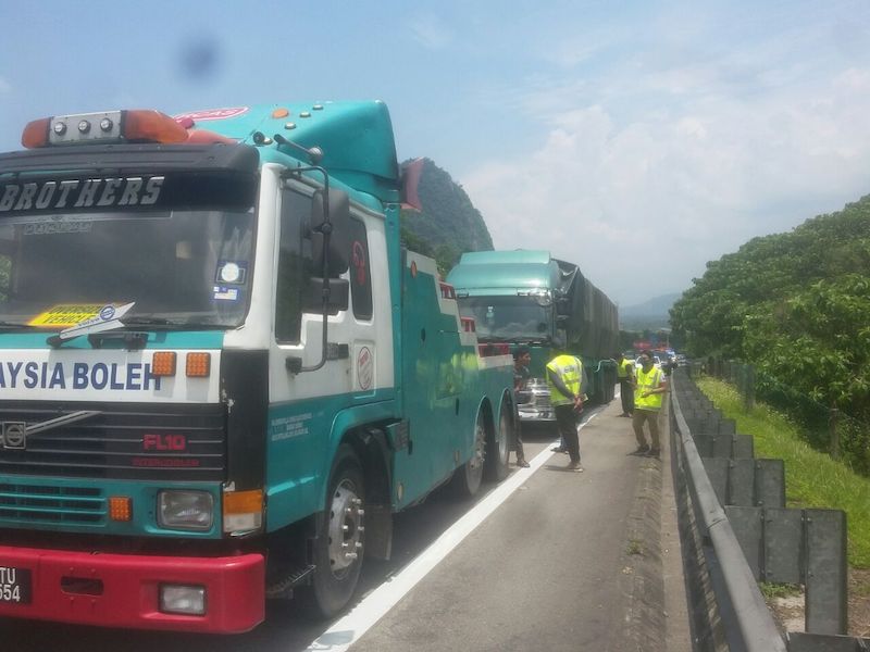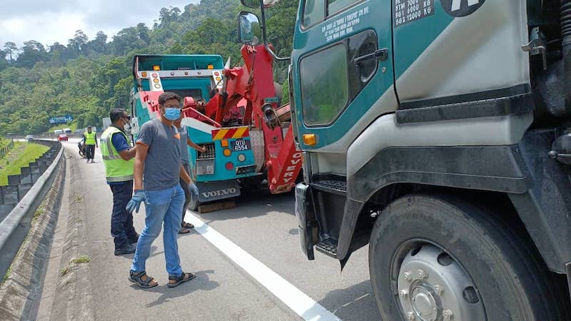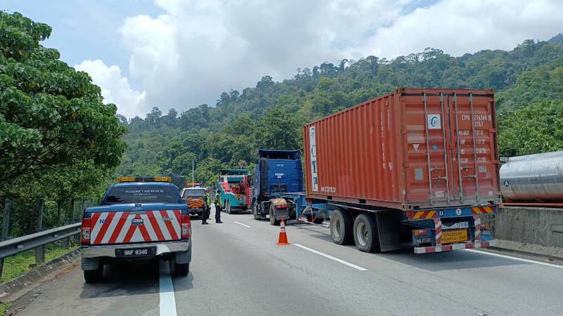 Pasukan operasi lebuh raya PLUS turut berada di lokasi dan mendapat kerjasama pihak berkuasa untuk menguruskan kejadian treler rosak.