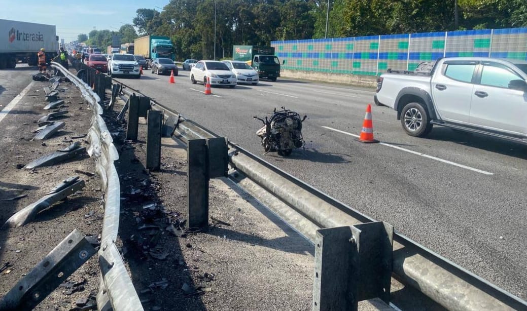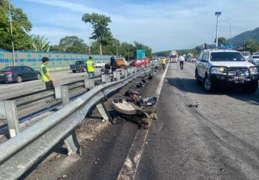 Akibat kejadian, kereta terbabit terbabas masuk ke lorong bertentangan lebuh raya”