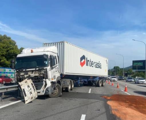 SEORANG wanita yang memandu kenderaan utiliti sukan (SUV), Mazda CX-30 cedera ringan selepas kenderaannya dirempuh sebuah treler yang membawa kontena di KM270.8 Lebuhraya Utara Selatan (PLUS), pagi semalam.