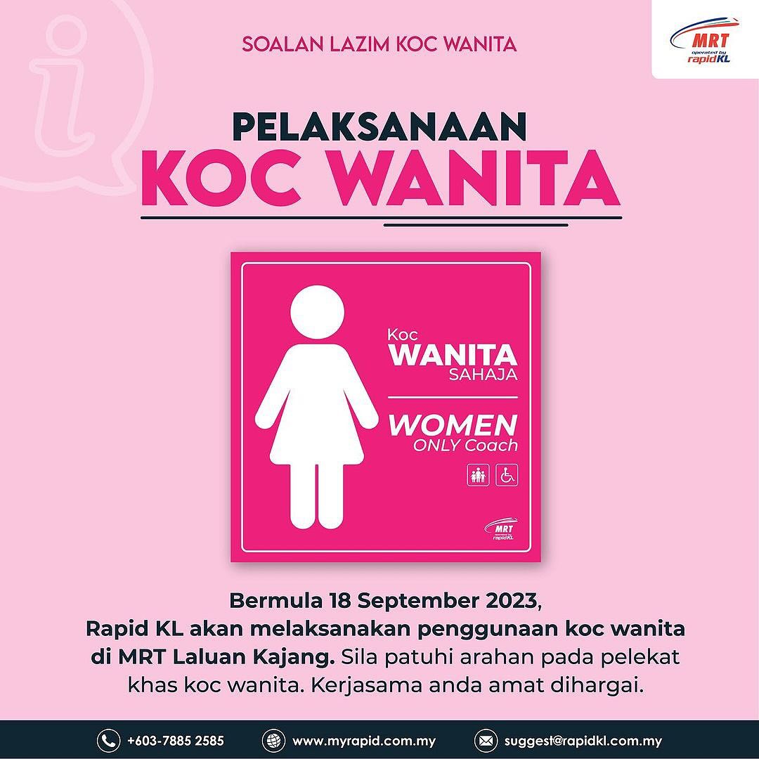Beliau berkata, pelaksanaan koc wanita ini adalah langkah memberi keselesaan selain dapat menjamin keselamatan penumpang wanita dan mengelakkan mereka menjadi mangsa gangguan seksual dalam tren.