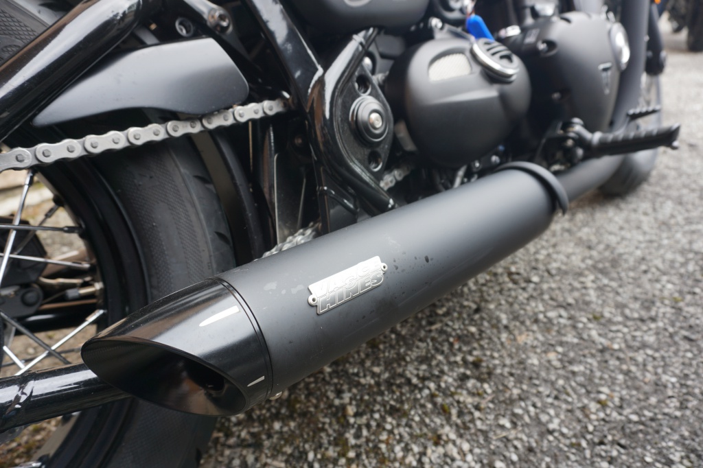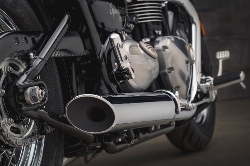 Keunikan bunyi ekzos asli Bonneville Speedmaster menyerlahkan karakter motosikal gaya bobber dengan kotak udara kembar dan material keluli tahan karat. Padanan lampu Speedmaster (2018) mirip dengan Bobber Black.