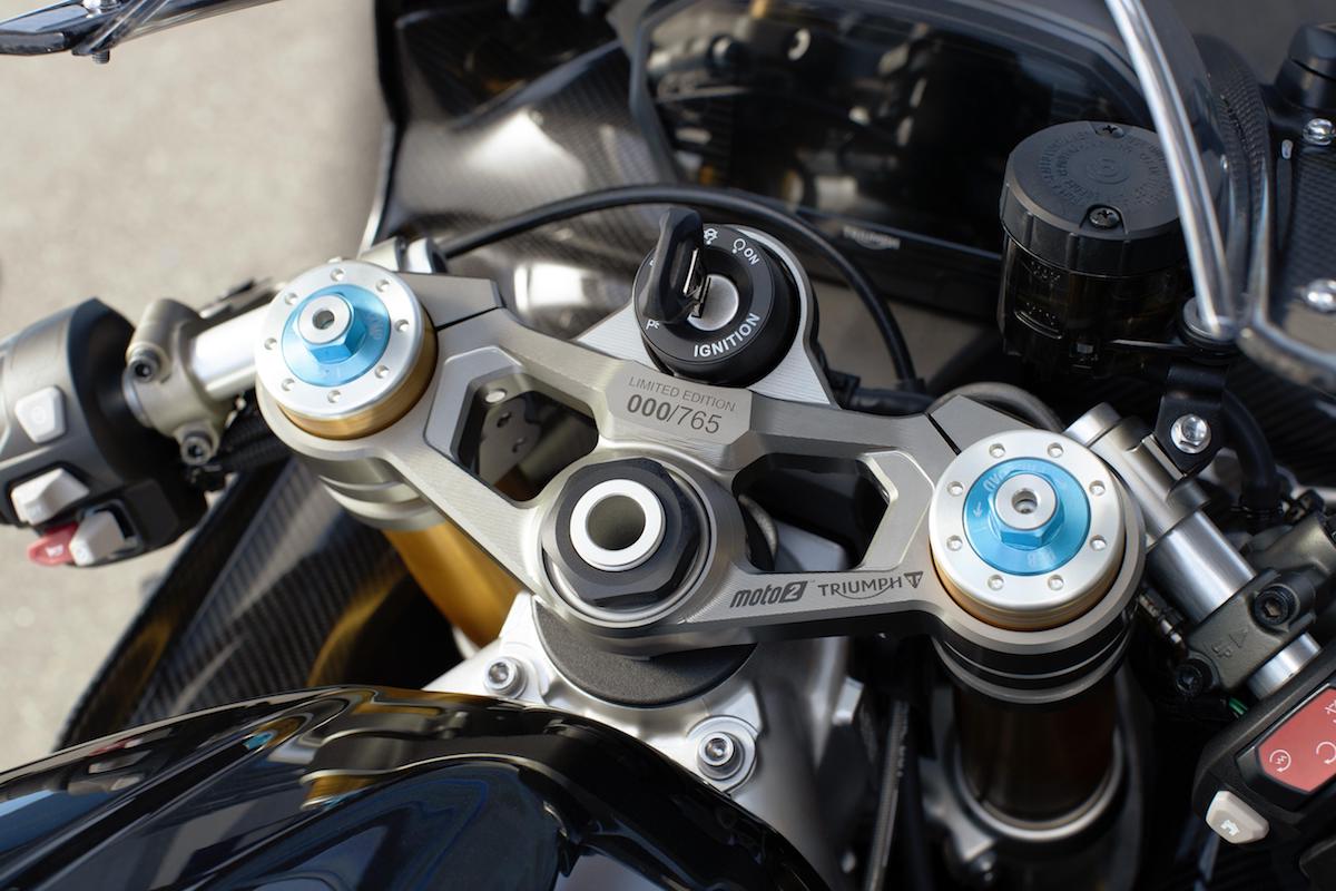 Model ini akan dihasilkan 765 unit untuk pasaran Amerika Syarikat dan Kanada, dan 765 unit untuk Eropah, Asia dan negara lain. Bahagian atas klamp tripel diukirkan nambor siri menggunakan laser bersama logo Triumph dan Moto2, yang juga satu-satunya model motosikal yang mendapat lesen daripada Dorna Sports selaku pengendali rasmi kejuaraan tersebut.