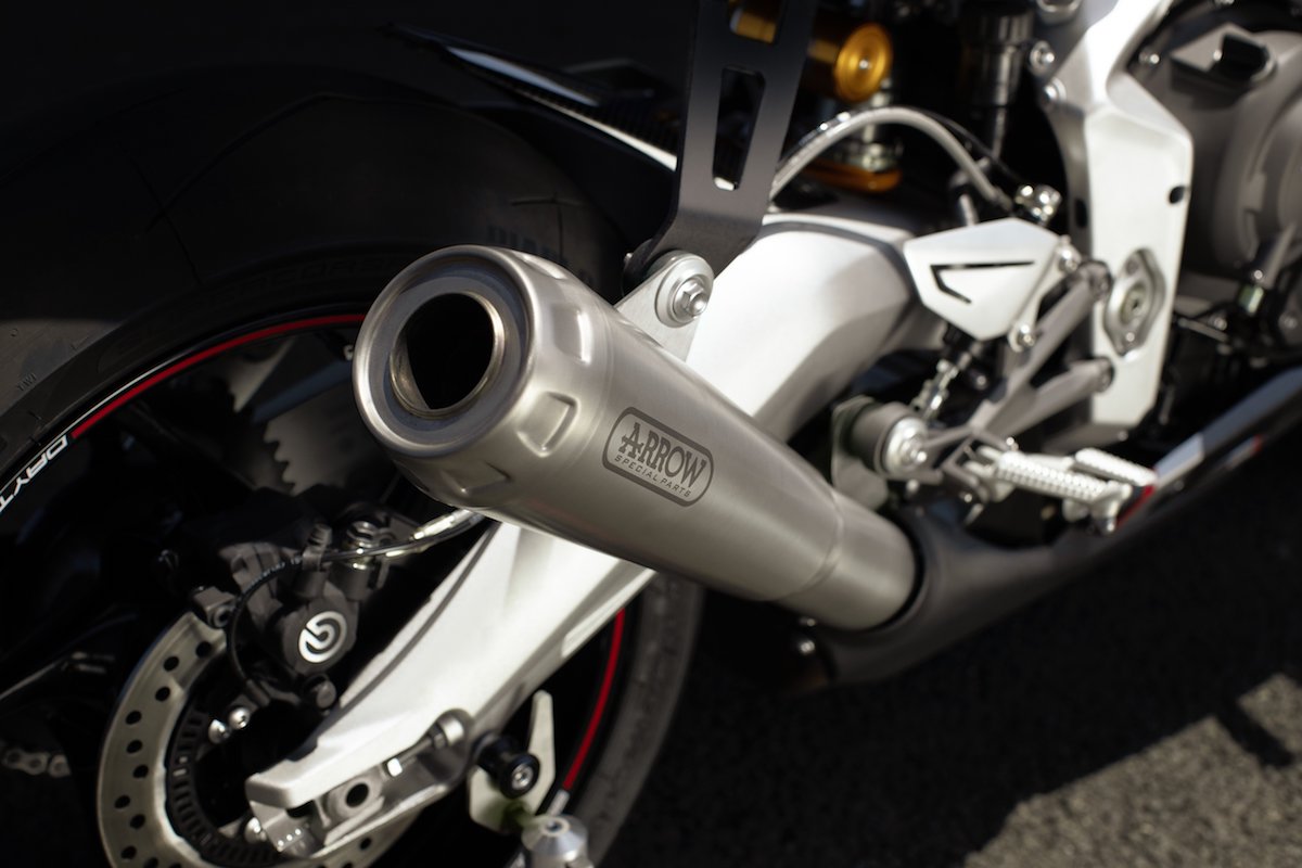 Struktur badan daripada gentian karbon penuh yang ringan membuatkan model ini menjadi satu-satunya Daytona yang mampu beraksi lebih dinamik, tangkas dan tajam di selekoh. Ekzos titanium Arrow baharu memberikan deruman yang sukar dilupakan, manakala frem dan swingarm aloi dianod.