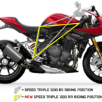 Ada meminta model jenis supersport seperti Daytona, tetapi Speed Triple 1200 RR ialah sportbike jenis café racer berbanding Speed Triple 1200 RS dalam bentuk supernaked. Kedua-dua varian berkongsi beberapa komponen, tetapi 1200 RR boleh dikatakan model berspesifikasi lebih tinggi.