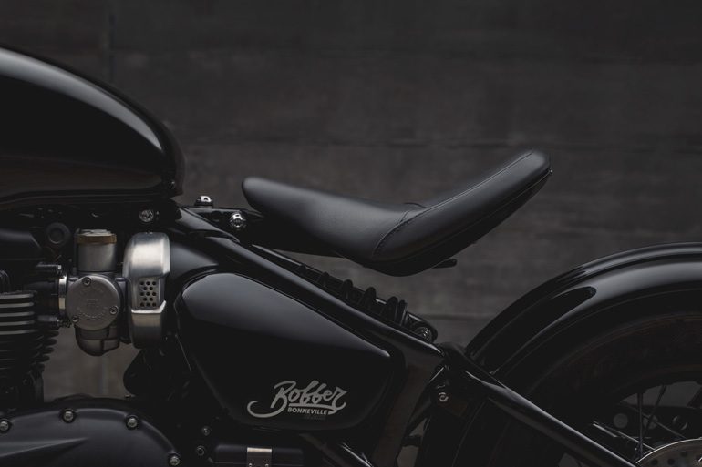Bonneville Bobber hitam ini juga mendapat beberapa pengemaskinian prestasi dengan profil agresif dan alat ganti dipertingkat. Rim depan ‘gemuk’ bersaiz 16-inci digantikan dengan rim 19-inci, sekali gus memberikan imej maskular, manakala fork 47mm mengambil alih peredam 41mm yang ada pada ‘Bobbed Bonnie’ standard.