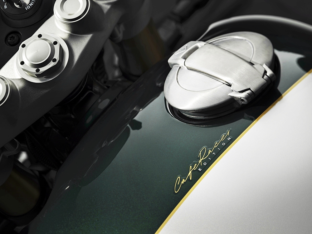 - Grafik Cafe Racer Edition dalam warna Empire Gold menghiasi bahagian tangki bagi menonjolkan identiti eksklusifnya.