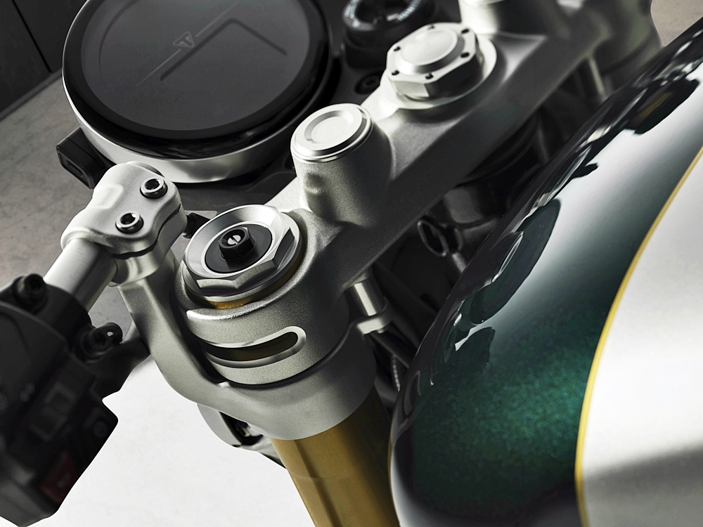 - Sistem Triumph Shift Assist yang membolehkan pertukaran gear pantas tanpa klac, disorokkan secara kemas di belakang tuas penukar gear.