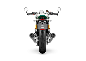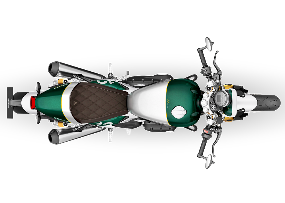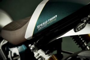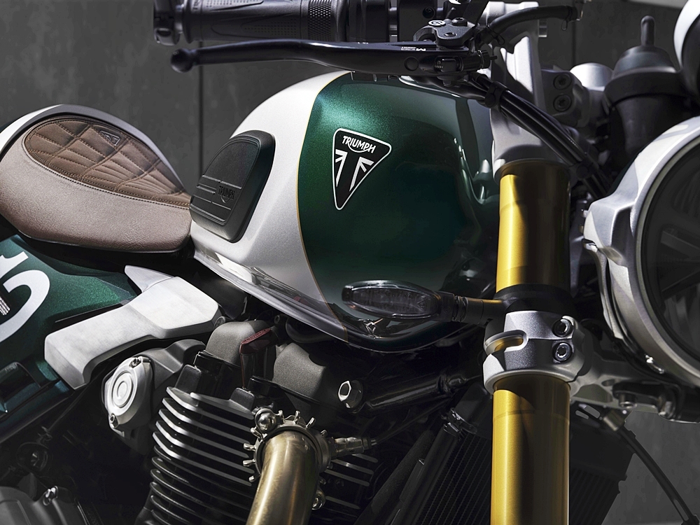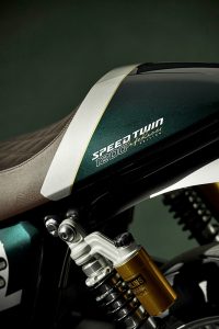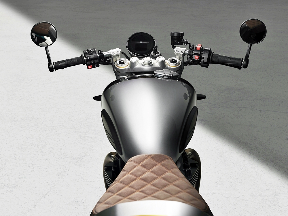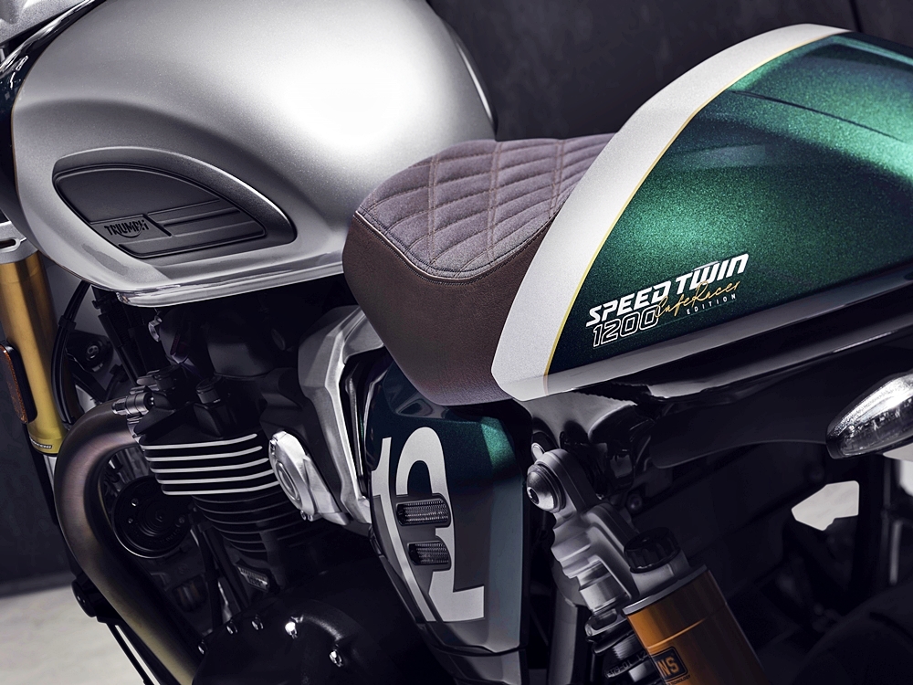 Speed Twin 1200 Cafe Racer Edition tampil dengan reka bentuk badan yang ringkas dan bahagian belakang tirus, sekali gus menyerlahkan bentuk atletik yang lebih mantap.
