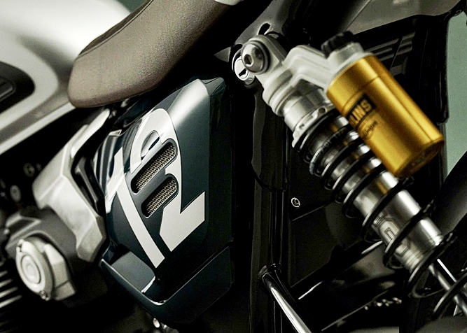 - Penyerap hentak Öhlins di belakang dengan takungan luaran yang juga boleh laras sepenuhnya dengan jarak gerak roda 123 mm.