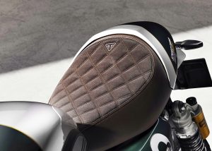 - Tempat duduk jenis bullet berwarna coklat disertakan dengan penutup cowl belakang yang boleh ditanggalkan untuk profil jentera tunggal yang kemas.