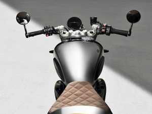 Imej sport cafe racer ini diperkukuh dengan penggunaan hendal jenis clip-on yang memberikan posisi tunggangan rendah dan menunduk.