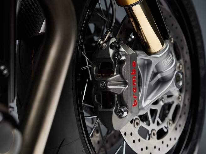 Sistem brek menggunakan cakera dual apung dengan kaliper Monoblok radial M4.34 Brembo di depan, dan cakera 220mm dengan kaliper apung 2-piston Nissin di belakang, manakala tayar daripada Metzeler Rzcetec RR.