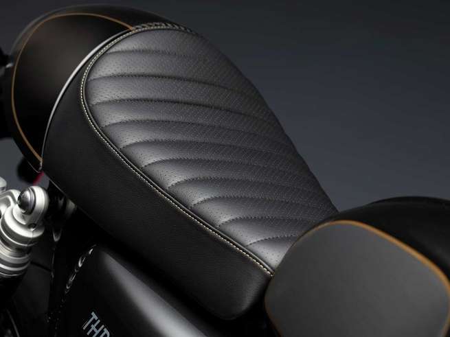 Ada juga rim multispoke, penutup enjin, seksyen belakang dan cat dengan aksen emas dan besi digilap atas tangki. Hasilnya ialah Thruxton elegan yang benar-benar berbeza.