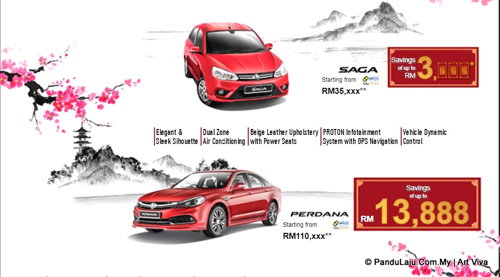 Bermula sekarang hingga 31 Januari ini, anda boleh menikmati potongan harga hingga RM13,888 untuk model Proton Perdana. Bukan saja kacak bergaya, anda kini boleh memiliki kereta berstatus bos-bos itu pada harga serendah RM110,000 (sebelum diskaun).