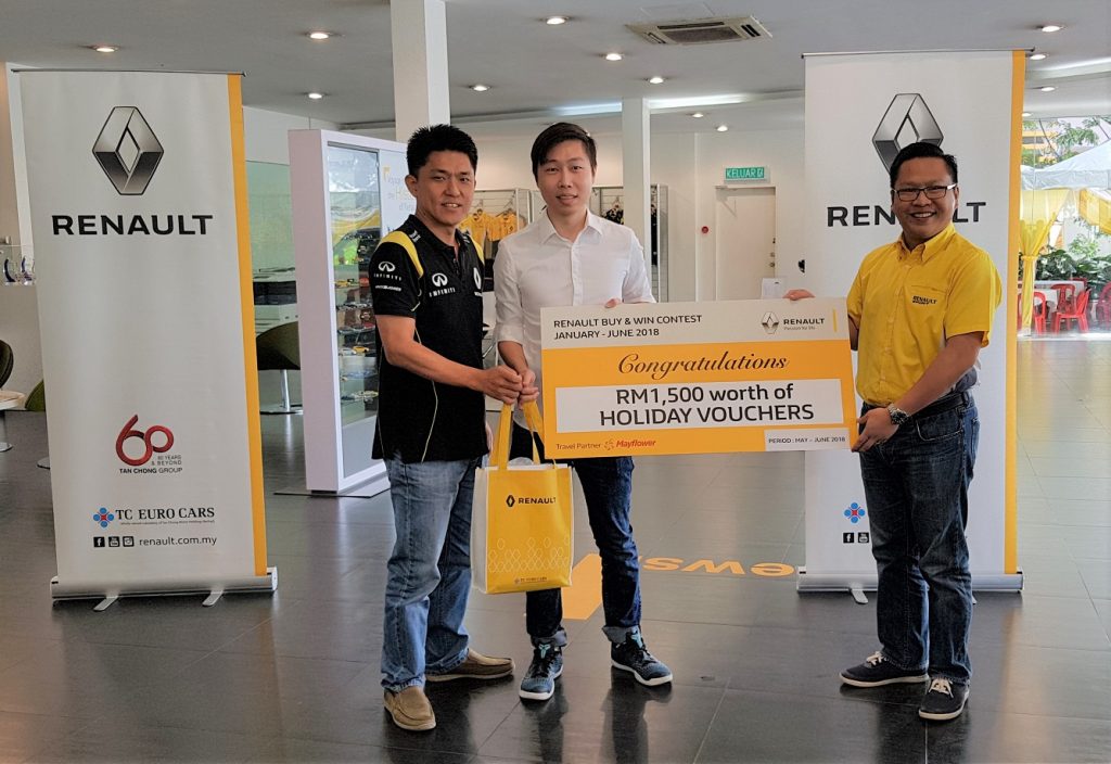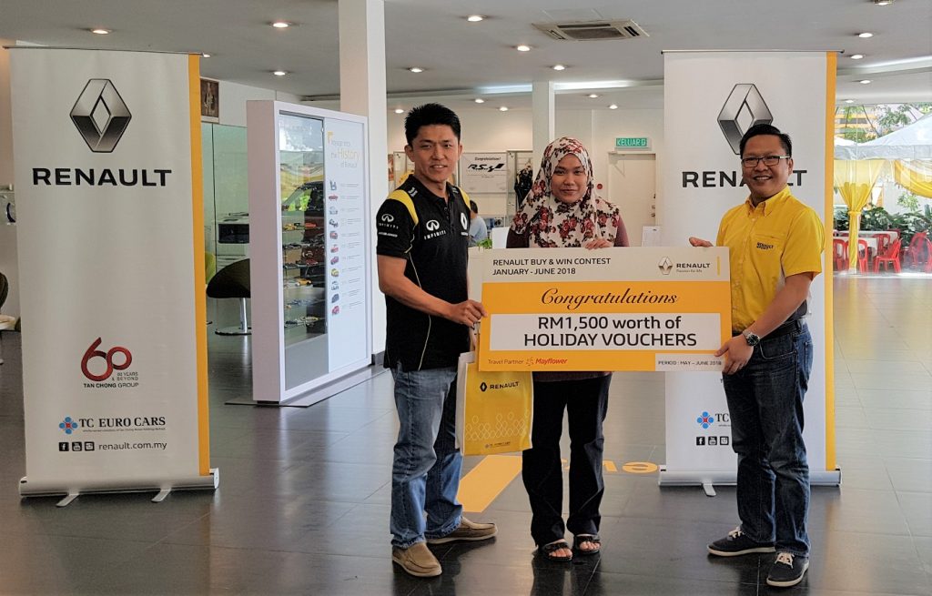Sementara itu, tiga lagi pemenang Nur Izzati Rozali, 24, Chang Jun Wei, 26, dan S Suraindiran membawa pulang baucar percutian bernilai RM1,500. Peraduan ‘Renault Buy & Win’ bermula 1 Januari hingga 30 Jun lalu yang mana pembeli Renault baharu layak menyertai pertandingan tersebut.