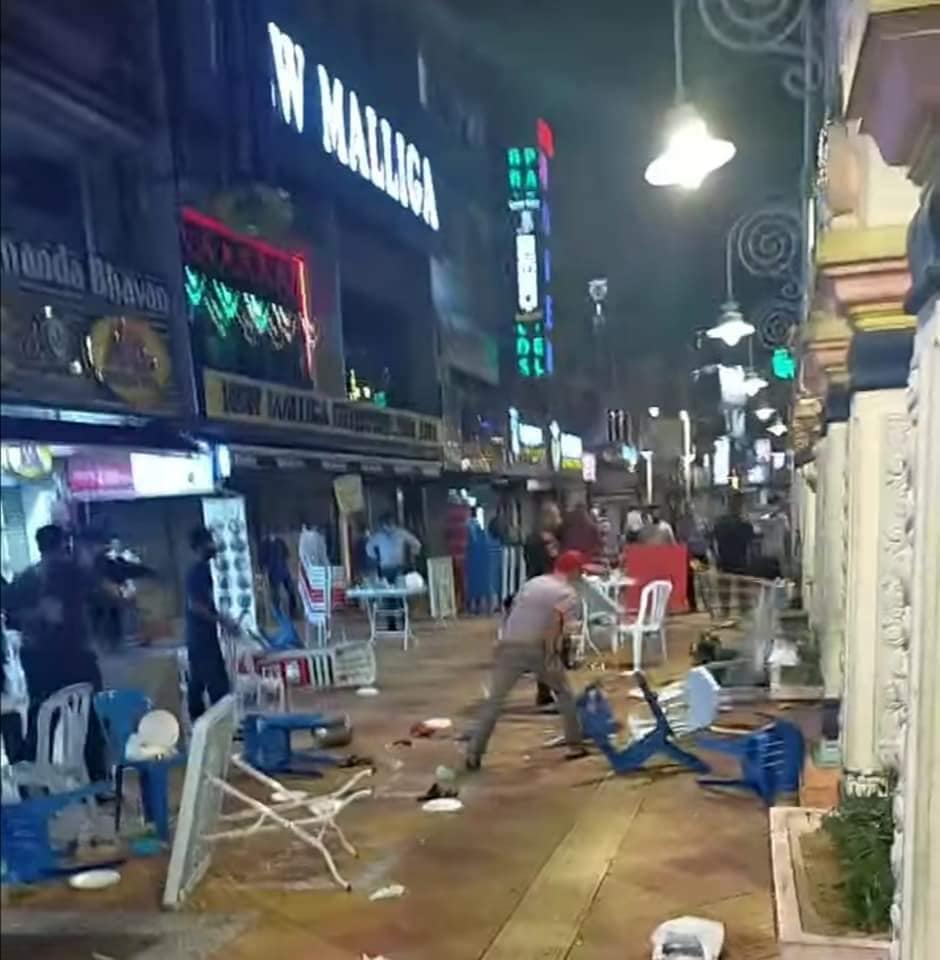 Berdasarkan video tular itu, beberapa lelaki dirakamkan membaling kerusi dan meja milik restoran berkenaan yang dilihat seakan bergaduh, dipercayai dengan pekerja restoran tersebut.
