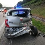 Tindakan berbahaya itu menyebabkan kereta suspek bertembung sebuah Rush dipandu di lorong kanan arah utara kerana tidak sempat mengelak hingga berpusing beberapa kali. Kebetulan ada sebuah lori treler dengan muatan sarung tangan juga gagal mengelak daripada melanggar Axia berkenaan.