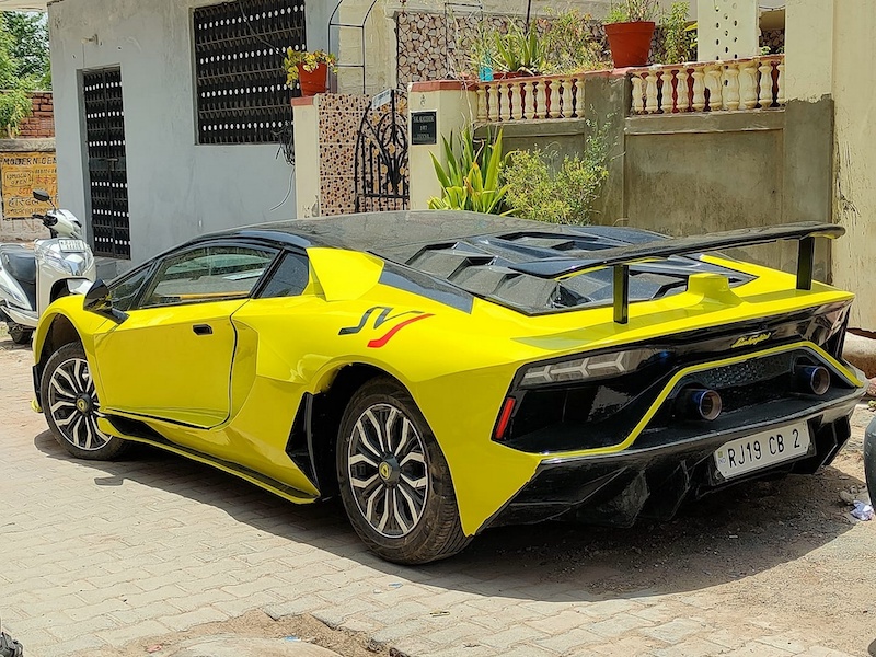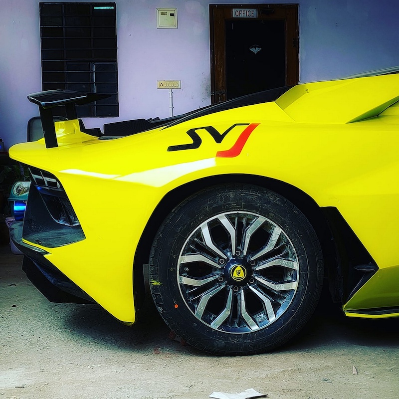 Kit badan Lamborghini Aventador SVJ versi India itu nampak 90 peratus sama seperti supercar buatan Itali tersebut. Ini termasuk kit badan aerodinamik, pintu sayap camar dan rekabentuk replika ruang enjin cermin belakang.