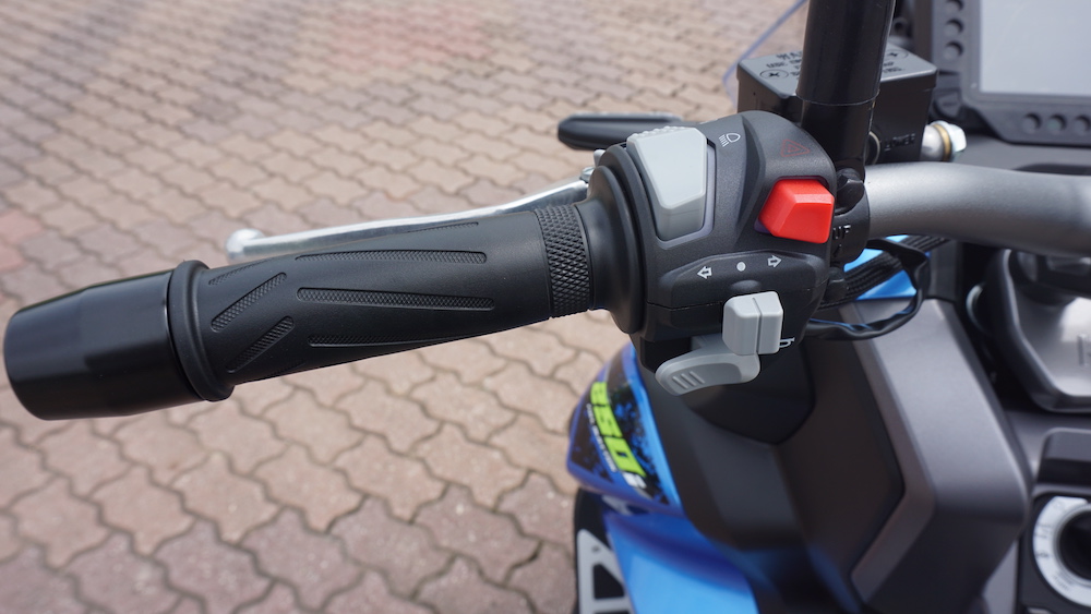 Butang kawalan di kiri dan kanan hendal mudah dicapai jari dan tiada sebarang masalah kelewatan operasi. Setanding skuter jenama Jepun.