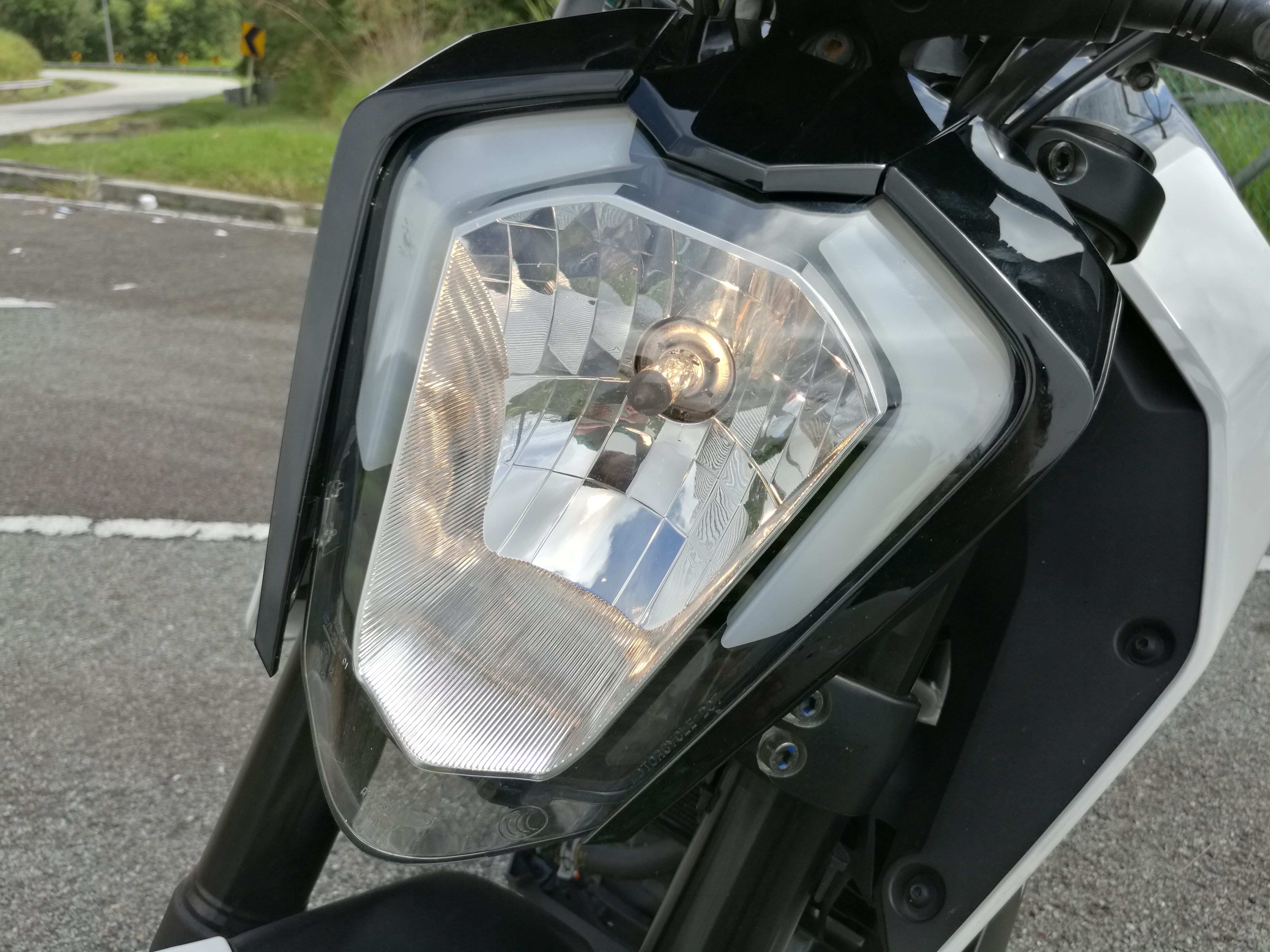 Tanpa imej lampu utama terpisah dengan ciri LED seperti abang-abangnya, lampu utama 250 Duke adalah jenis halogen tunggal 55w yang cukup terang ketika menunggang malam. Model ini turut dipadankan sepasang lampu siang (DRL) berbentuk boomerang putih atau tanduk terbalik, terpulang kepada imaginasi anda.
