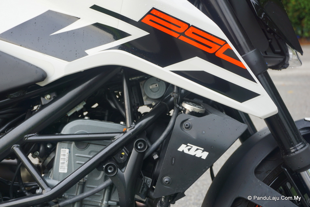 Penjagaan? Seperti dijangka bagi sebuah jenama antarabangsa, 250 Duke (2017) masih belum dapat dimasukkan dalam kategori motosikal mudah dan murah, terutama jika anda sebelum ini ialah pemilik kapcai. Suspensi depan jenis terbalik misalnya, perlukan lebih perhatian dan kerap disenggara (boleh dilakukan sendiri), terutama apabila perjalanan anda melibatkan kondisi jalan kurang ideal seperti berlubang dan berdebu. KTM bagaimanapun menawarkan jaminan selama 2 tahun tanpa had perbatuan. Mungkin ini dapat melegakan hati anda.
