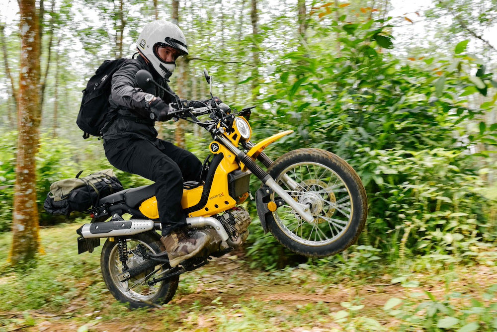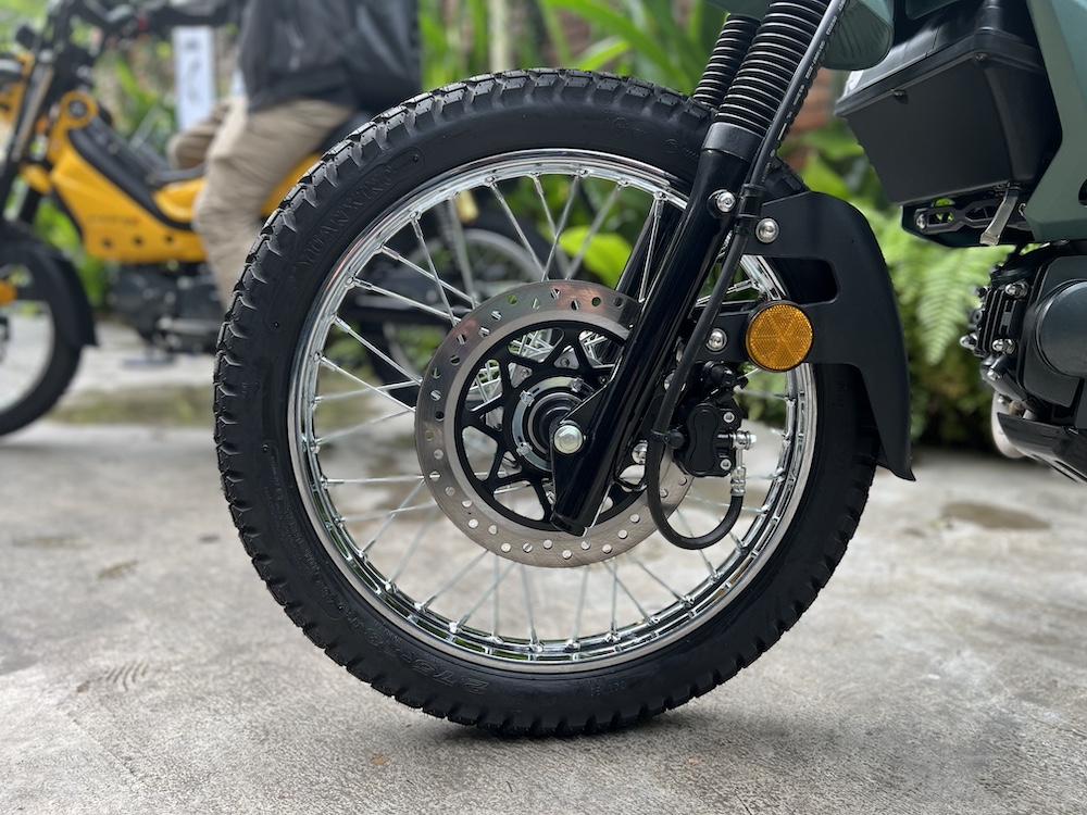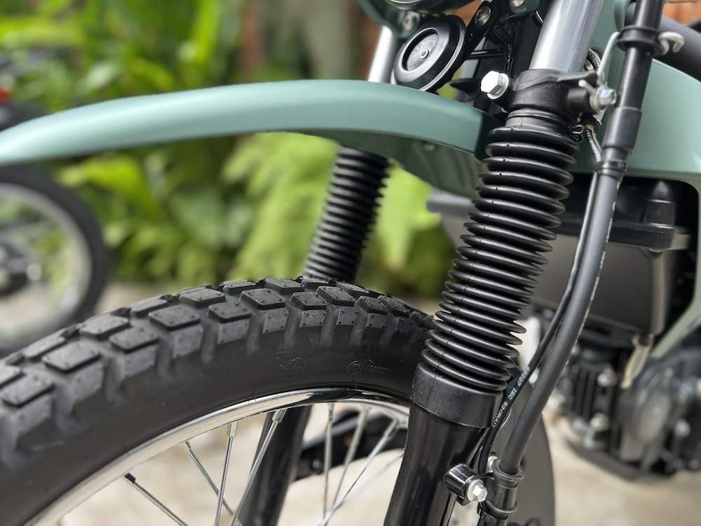 Komponen ini berjaya mengelakkan kapcai ini daripada mudah tergelincir ketika mengharungi denai dan permukaan jalan mencabar di lokasi.