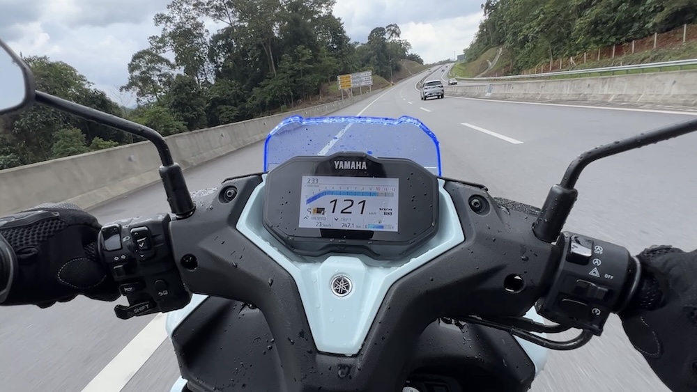 Di lebuh raya, kami dapat capai 121kmj (jalan rata, bukan turun bukit). Cuaca hujan, jadi kami tak paksa lebih - tapi enjin rasa ada lagi ruang untuk “fly”.