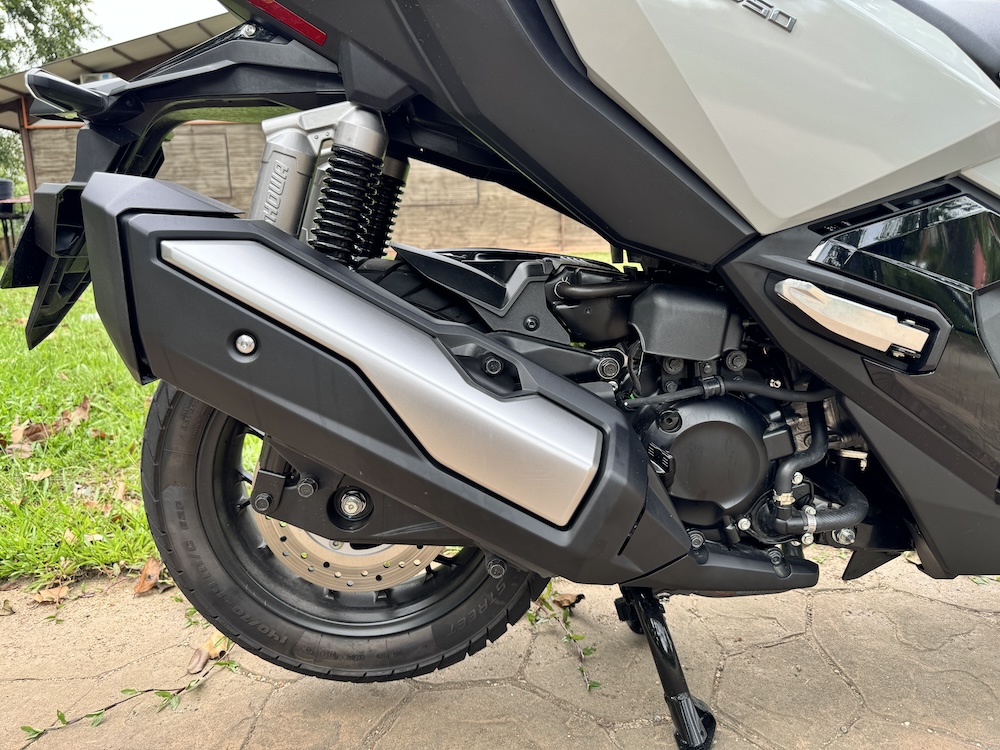 - Prestasi enjin silinder tunggal 330cc SOHC penyejukan cecair 4-injap nyata tidak mengecewakan dengan menawarkan kuasa dan daya pecutan memberangsangkan bagi sebuah skuter kelas pertengahan. Hantaran kuasa menggunakan tali sawat menerusi kotak gear automatik CVT juga boleh dipuji.