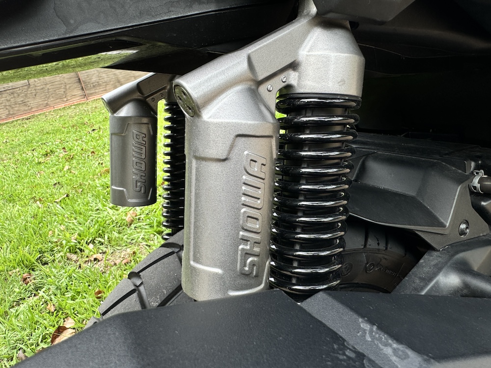 - Prestasi sistem suspensi juga cukup baik dengan fork dan absorber kembar Showa. Tiada isu skuter membuai atau hentakan keras sepanjang tunggangan. Skuter ini masih dapat ditunggang stabil dan seronok pada halaju 150kmj.