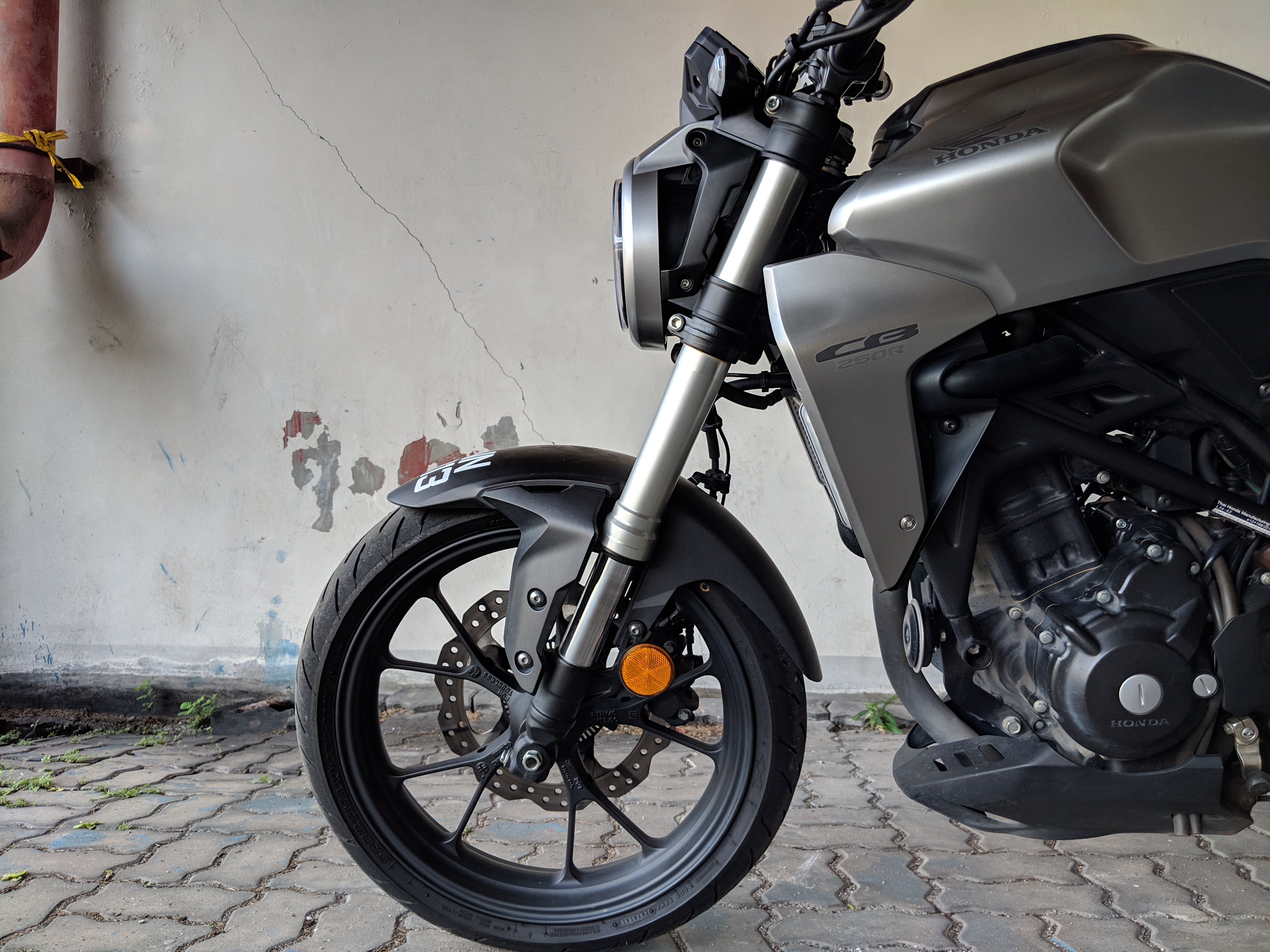 Menunggang laju di lebuh raya juga bukan masalah besar, berbekalkan rim dan tayar lebar dalam kelas 250cc, CB250R langsung tidak goyah ketika memotong rapat kenderaan lain yang lebih besar. Sistem brek menggunakan cakera tunggal depan dan belakang, dengan bahagian depan menggunakan kaliper jenis radial buatan Nissin, memang nampak lebih bergaya seperti ‘big bike’. Prestasi brek cukup baik untuk tunggangan harian.