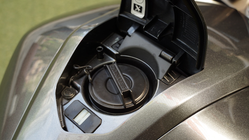 - Tangki minyak perlu dibuka dengan menekan butang pada konsol kawalan. Awalnya, ada sedikit sangkut, selepas itu tekan terus saja terbuka. Hendak buka pelana pun kena tekan butang juga.