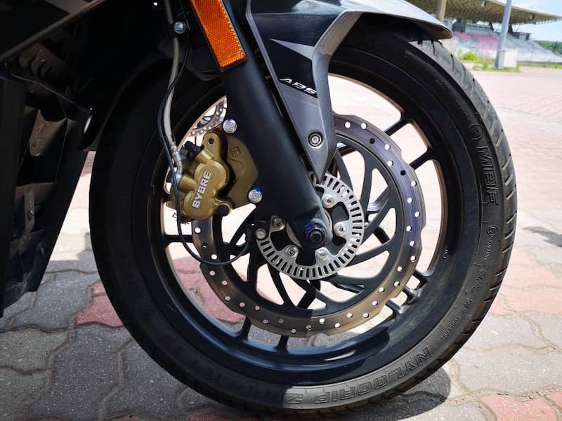 - Sistem henti dianggap memadai bagi sebuah sportbike 200cc dengan brek cakera pada kedua-dua roda dengan tambahan Sistem Brek Anti-Kunci (ABS) pada roda depan.