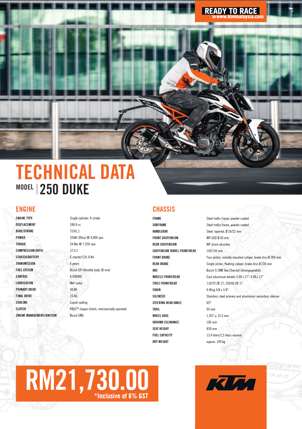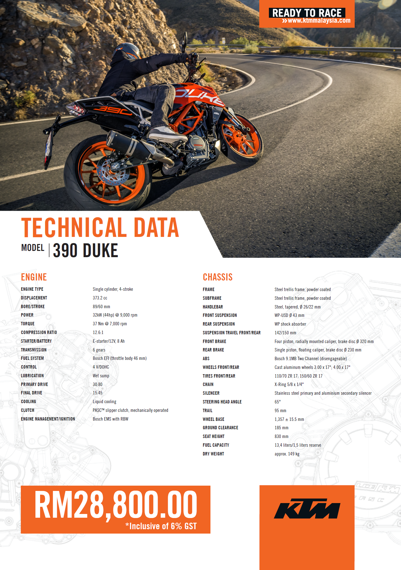 Ditawarkan pada RM21,730 bagi 250 Duke (2017) dan RM28,800 bagi 390 Duke (2017), kedua-dua varian ini diletakkan sebagai pesaing kepada jentera seperti Kawasaki Z250SL dan Honda CB500F yang menawarkan nisbah harga-kuasa lebih tinggi.