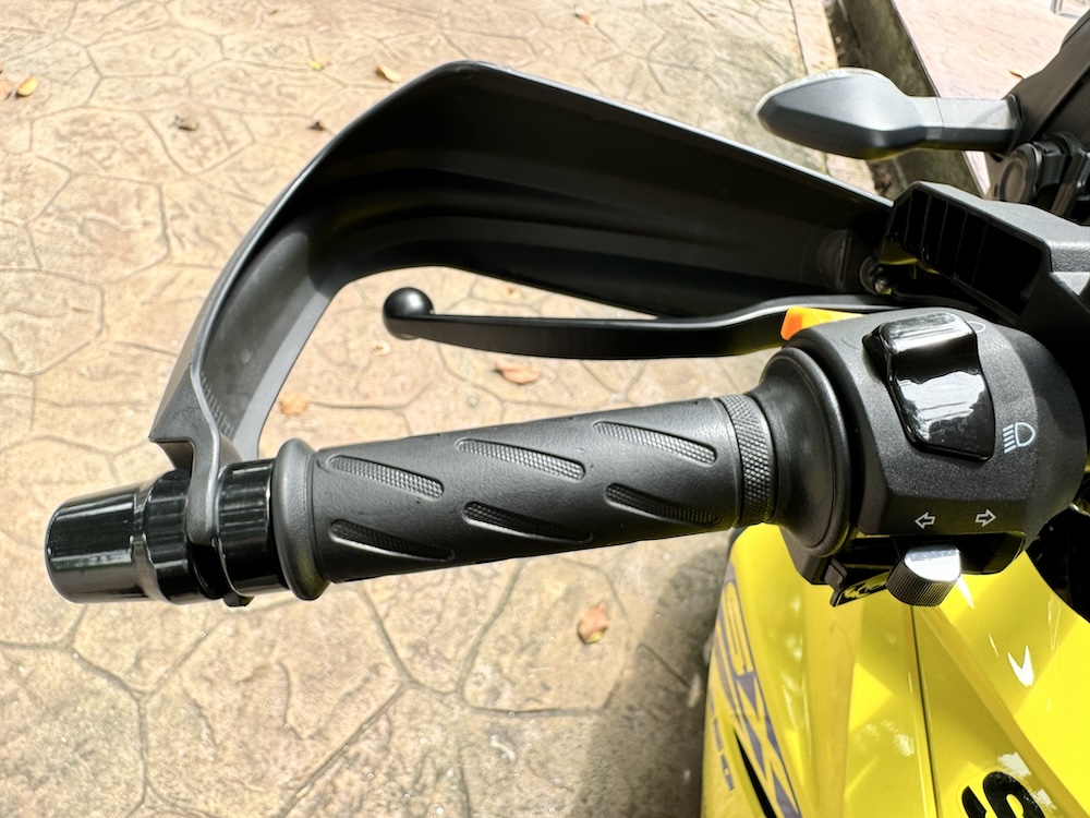 - Kawalan hendal memberikan fiil tunggangan terasa seperti menunggang sebuah kapcai, tetapi perlu sedikit usaha untuk mengawal operasi klac.