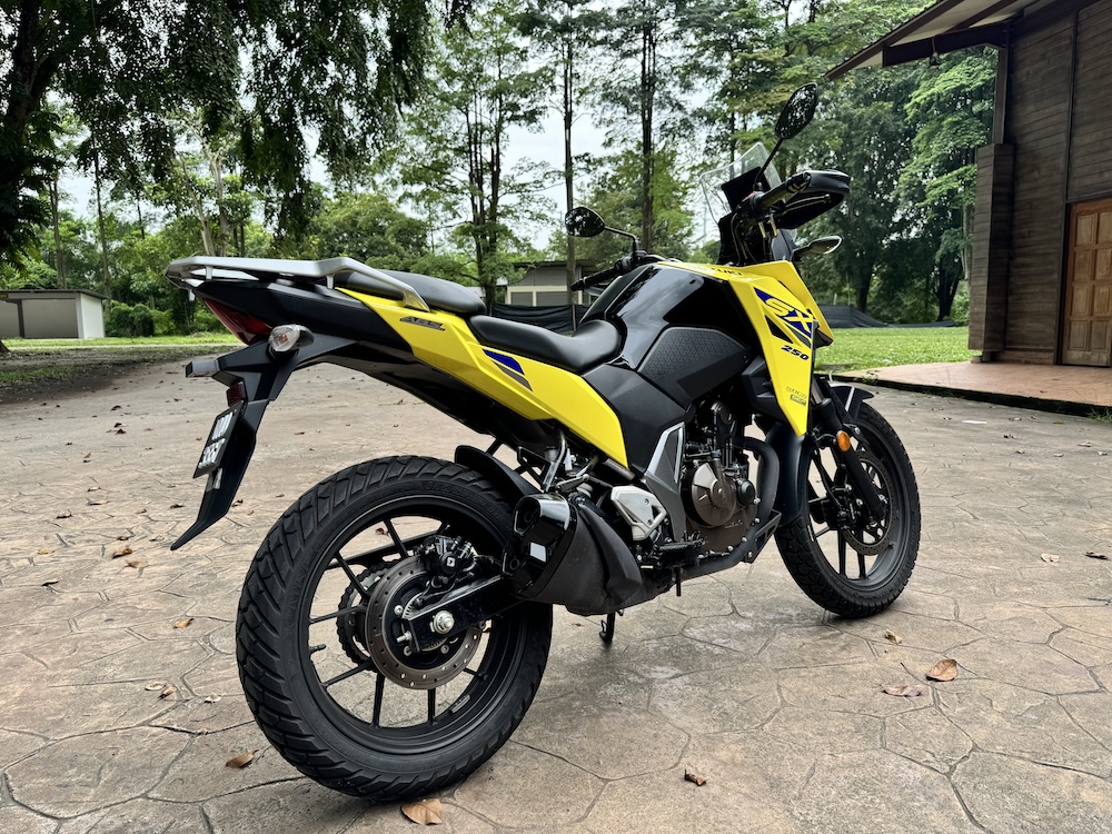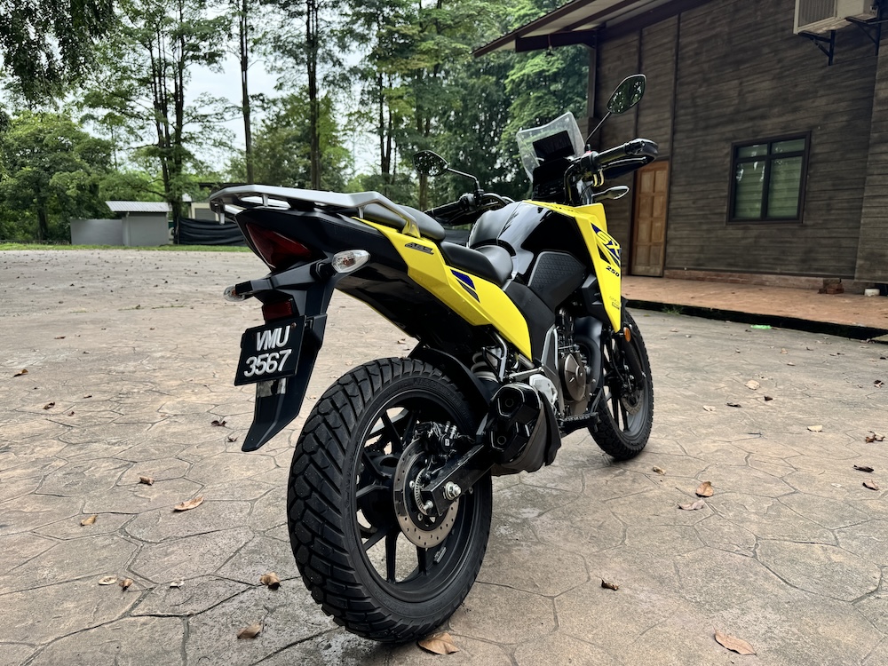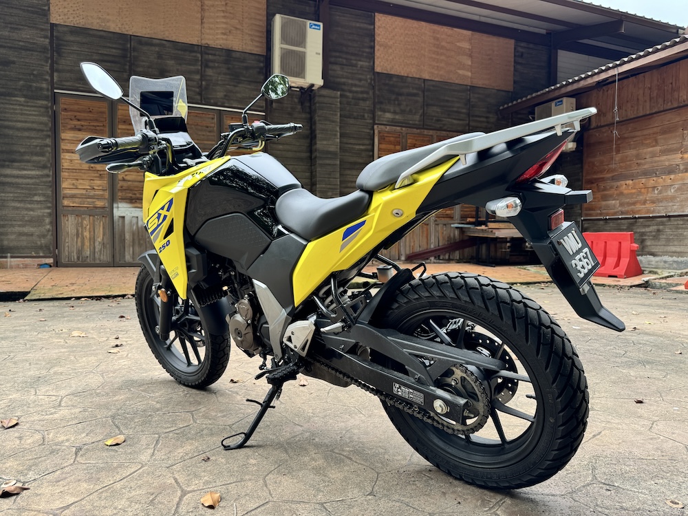 Suzuki V-Strom 250SX 2024 ialah varian terkecil dalam famili V-Strom yang ditawarkan pada harga RM17,800, tidak termasuk insuran, cukai jalan dan pendaftaran.