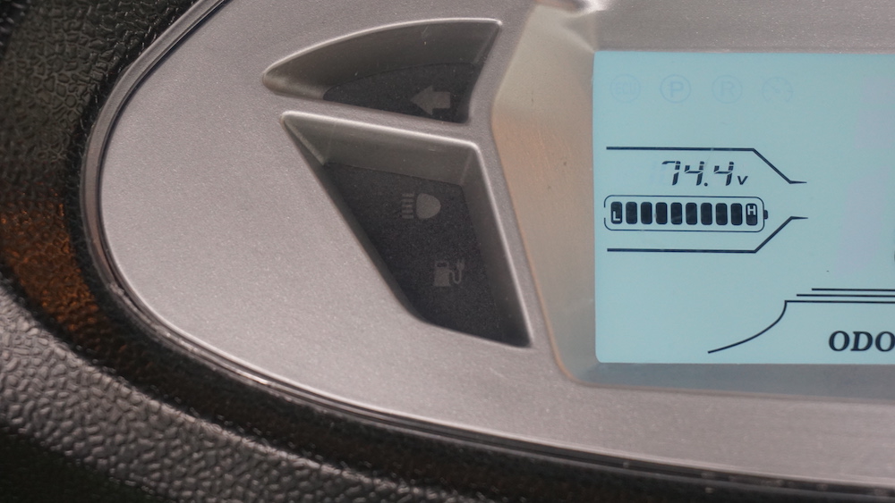 Bawah pelana juga ada dua suis pemutus arus (circuit breaker), iaitu satu suis untuk setiap pek bateri. Maksudnya, skuter ini hanya bergerak menggunakan satu pek bateri pada satu-satu masa.