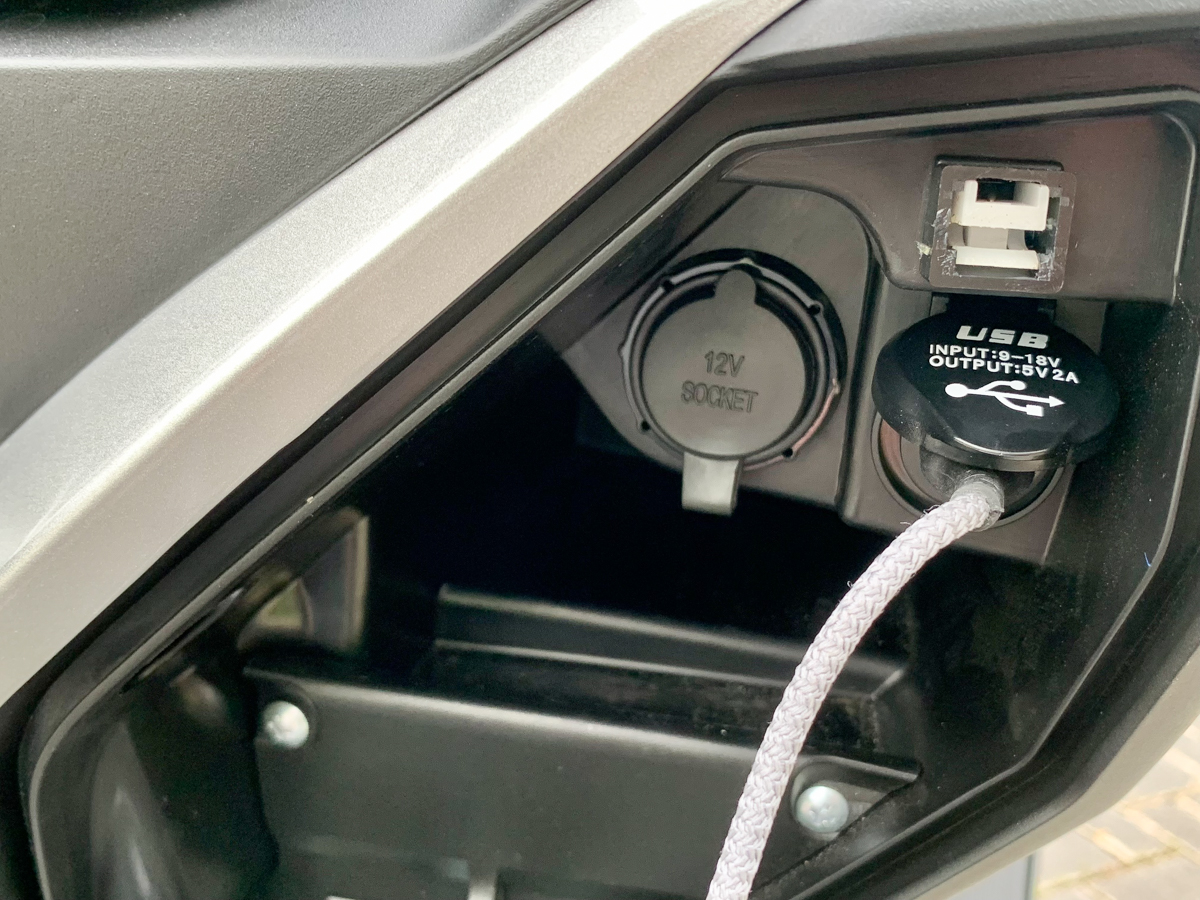 - Soket pengecas 12V dan port USB dalam kotak simpanan.