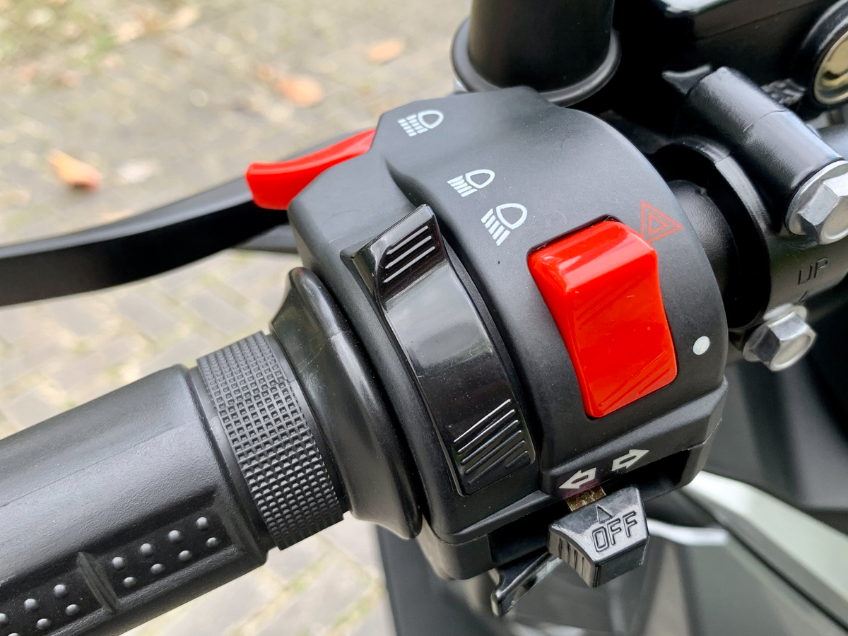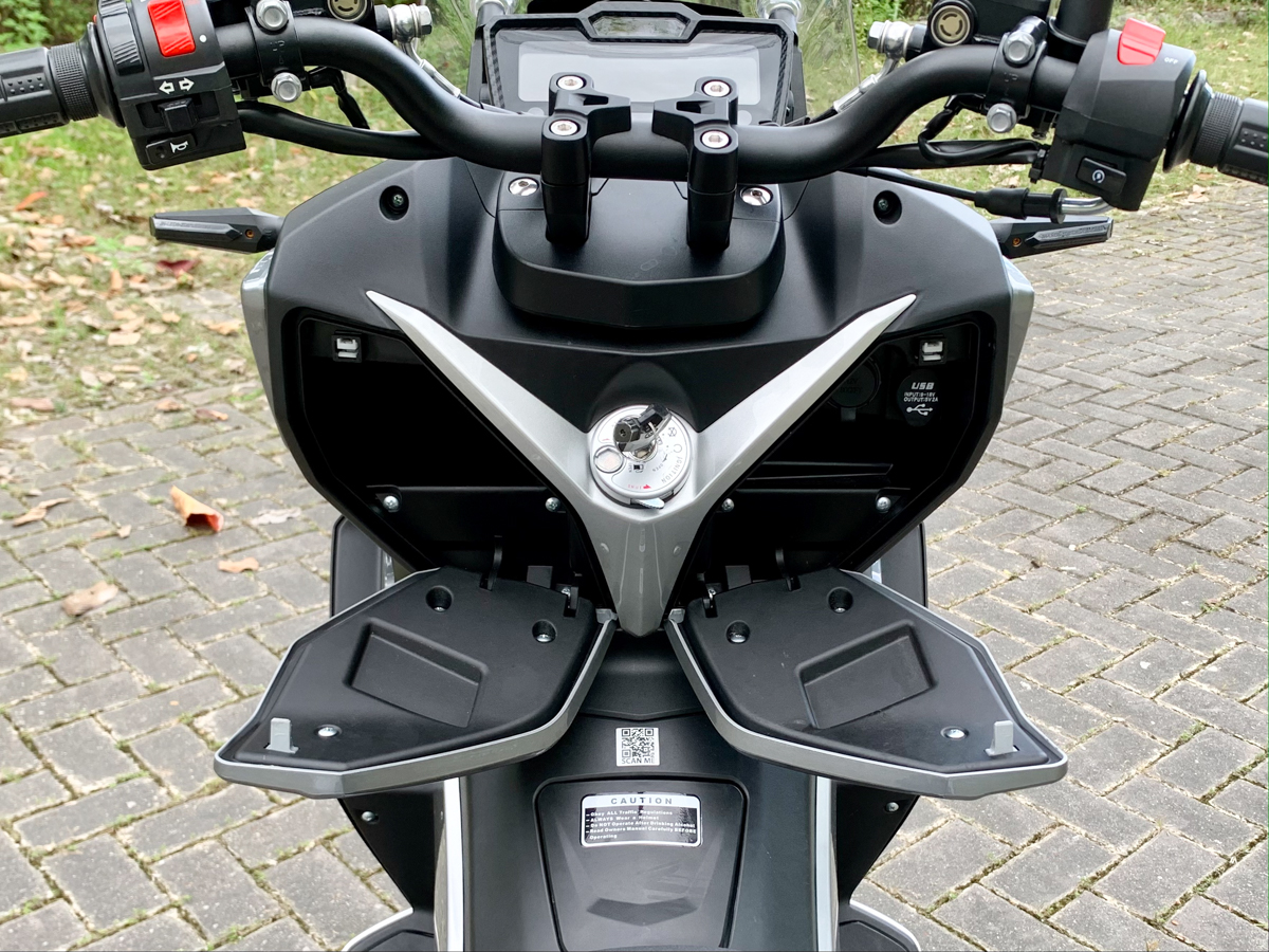 - Tempat letak barang di bawah pelana agak kecil, tetapi masih boleh memuatkan helmet muka terbuka (open-face) asas. Helmet jenis jet seperti HJC atau Arai tidak muat.